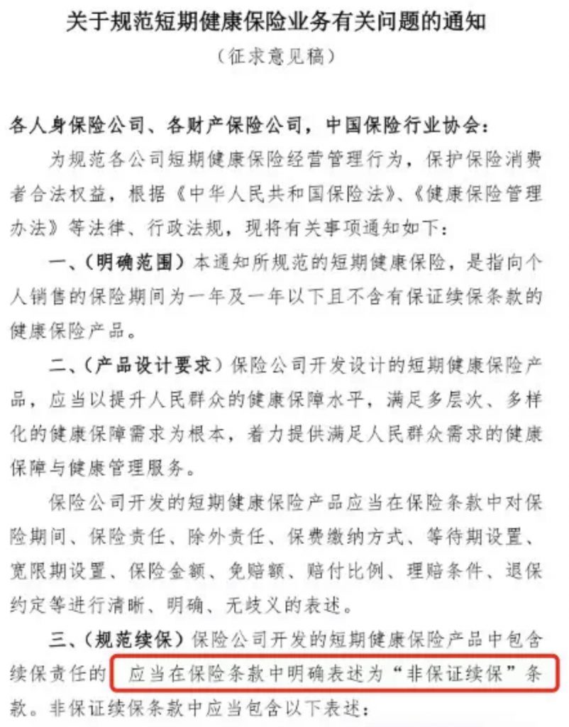 吃瓜的依据就是最近银保监起草的《规范短期健康保险业务有关问题的通知(征求意见稿)》。