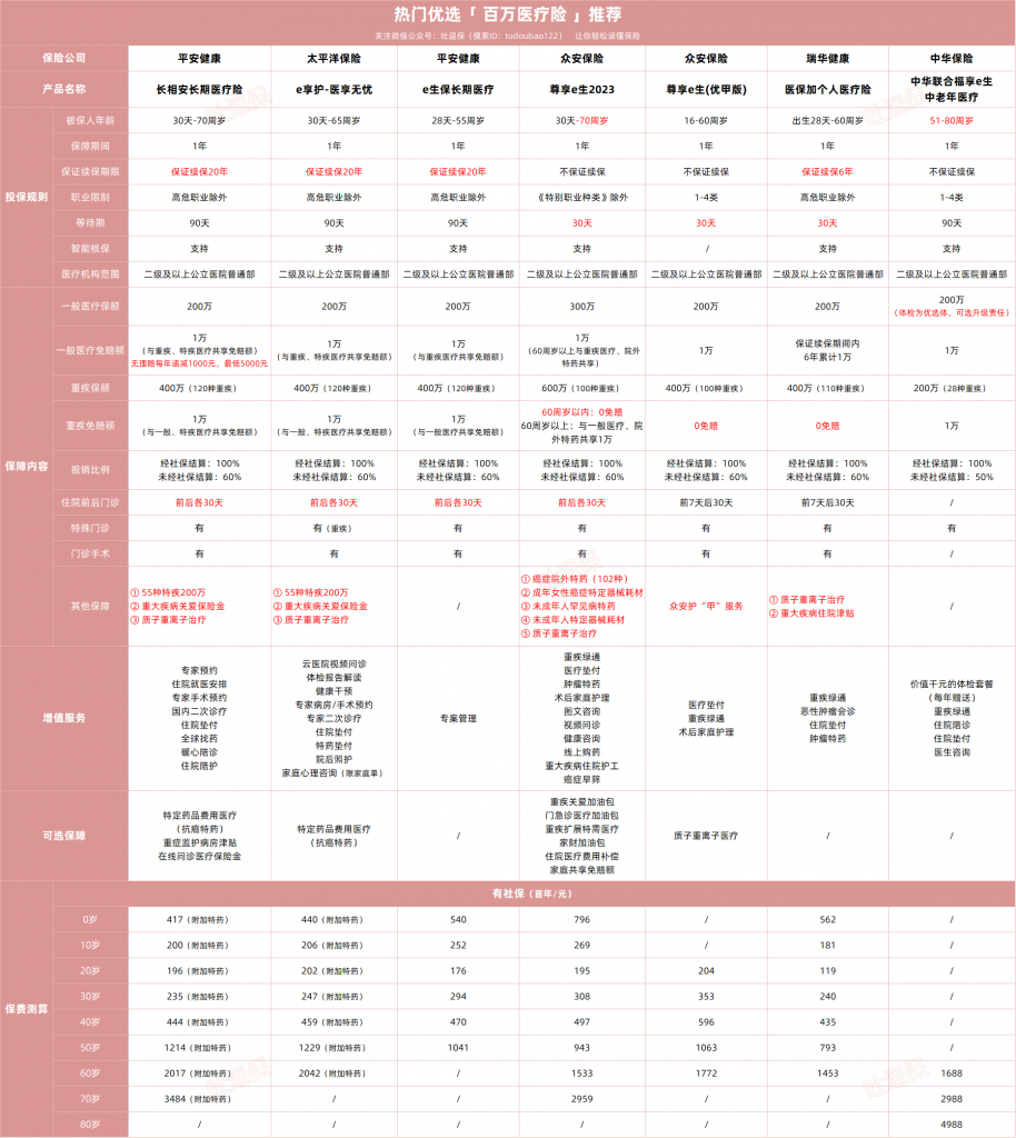 榜单囊括目前市场上性价比最优的,也有保障最全面的百万医疗险。