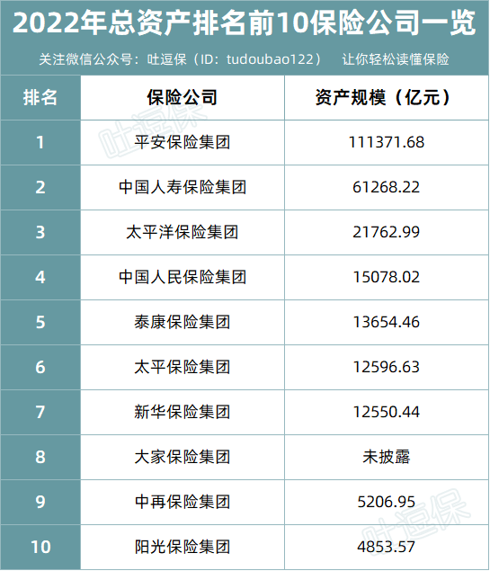 从2022年的财报来看,目前中国资产排名前十的保险公司有👇: