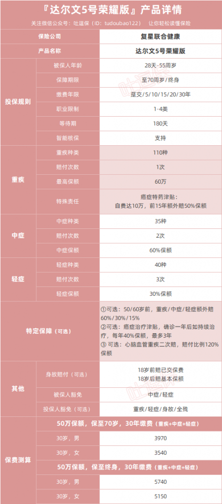 达尔文5号荣耀版,看起来就是一款重疾险癌症特别加强版。