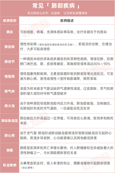 并花时间整理了常见肺部疾病的可能核保结果(ps:不同产品的核保结果会有些许差异),以及患有肺部疾病的人群可以买的保险组合。