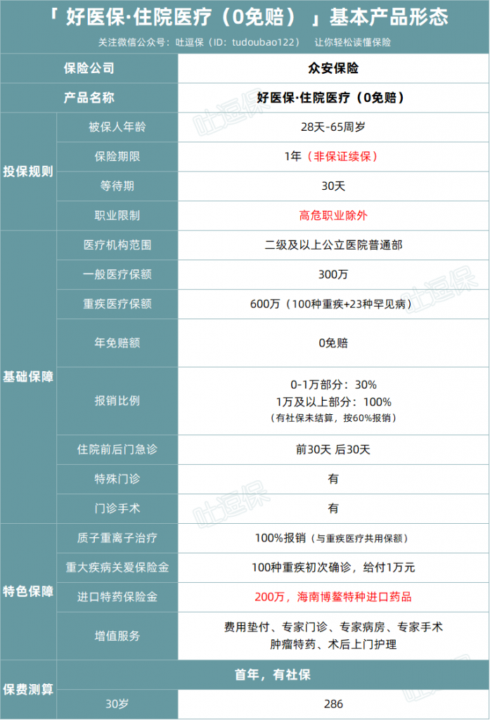 “0免赔”的保障,加上不是很浮夸的保费,这款产品就显得非常有吸引力了~