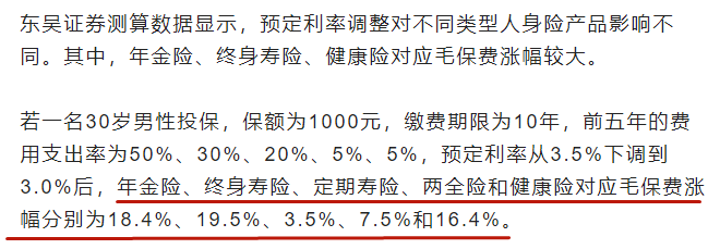 至于「☞ 定期寿险 」,影响就比较小了,目前看来新产品也只是上涨了5%左右的保费。