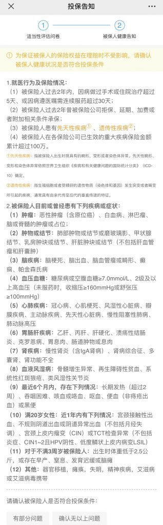 通常重疾险都会问到近1年或2年,是否有检查异常的情况。