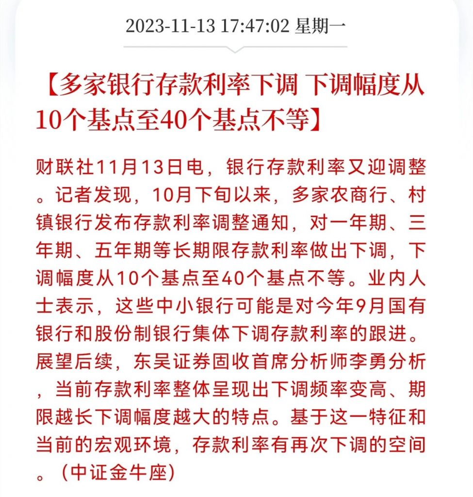 之前我就说过,只要大家还不把钱取出来,用来消费或者投资,那么这个存款利率就会一直降下去。