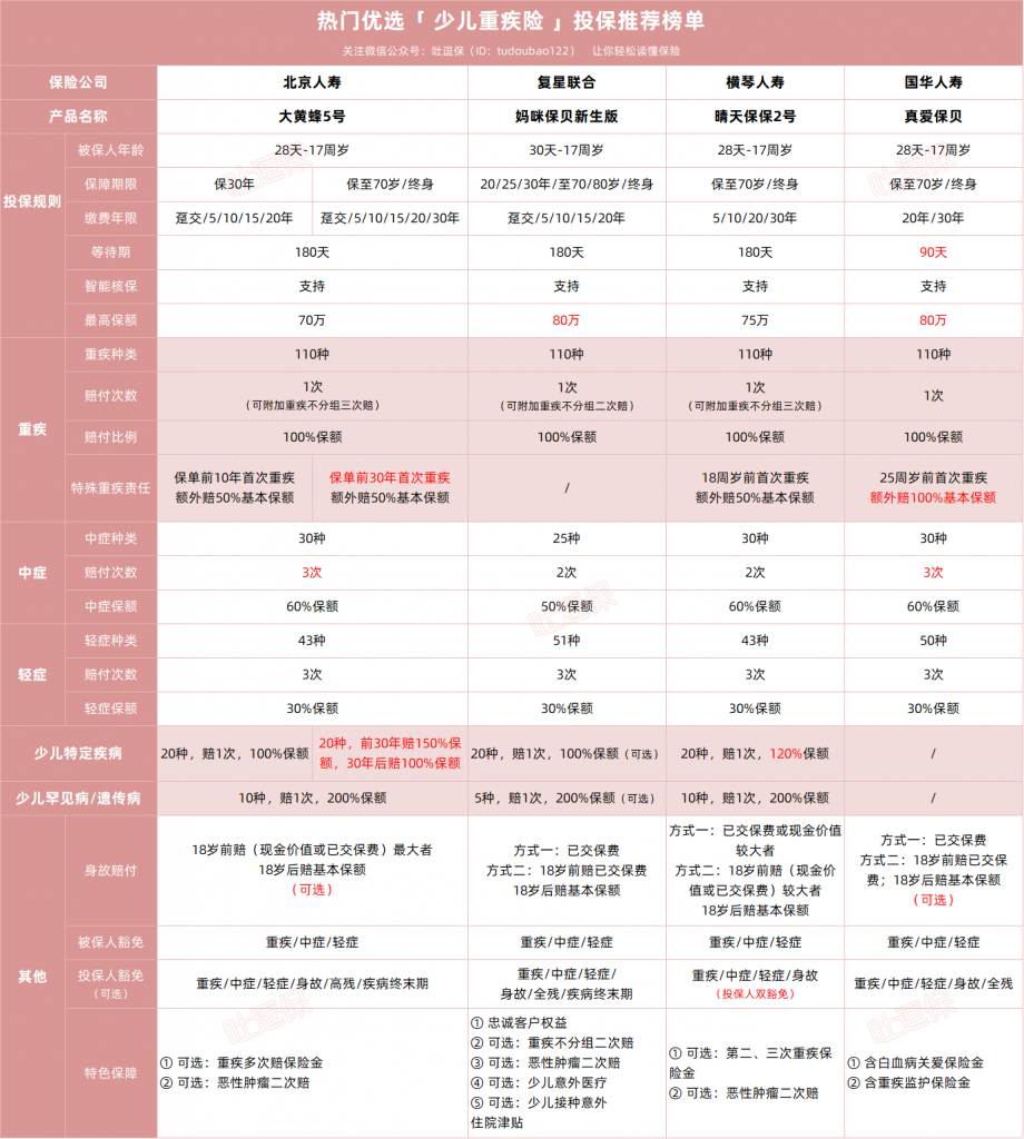 总之,以上少儿重疾险各有优势;
