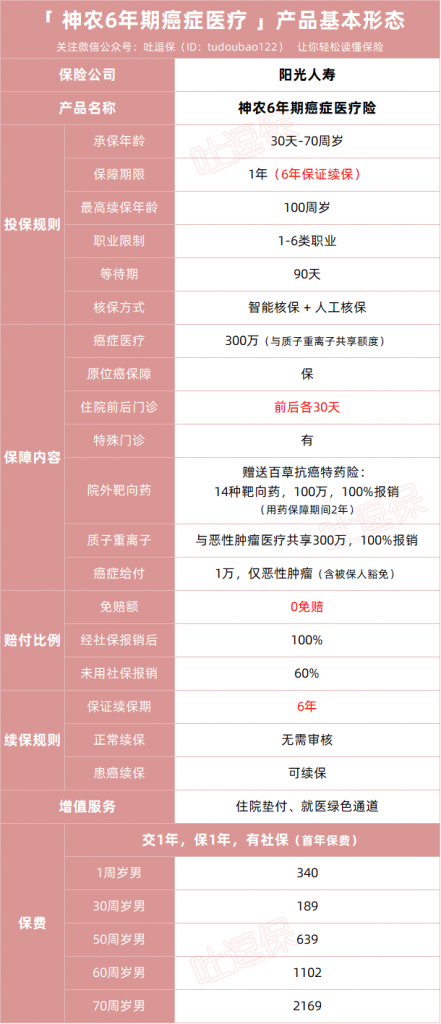 神农癌症医疗险不仅能保证续保6年。