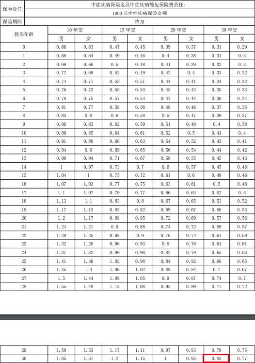 这部分的价值我们可以通过康惠保旗舰版的费率表来计算: